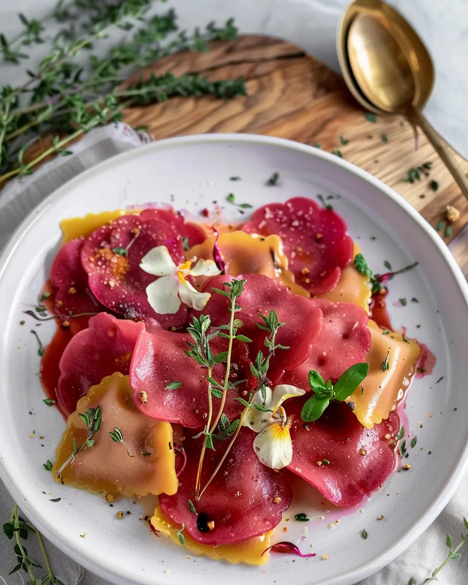 To make your beet heart ravioli shine on the table, consider plating them in a shallow bowl. Drizzle a bit of olive oil and sprinkle fresh thyme leaves before serving. Adding some colorful edible flowers not only enhances the visual appeal but also gives a gourmet touch that will wow your guests. You can find stunning inspiration for elegant plating on sites like Epicurious or Food52, which offer great tips on how to elevate your dining experience.