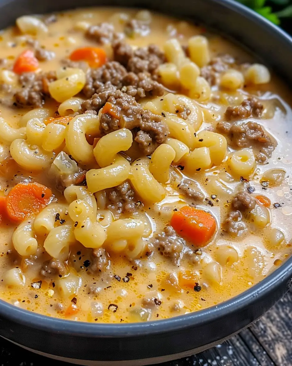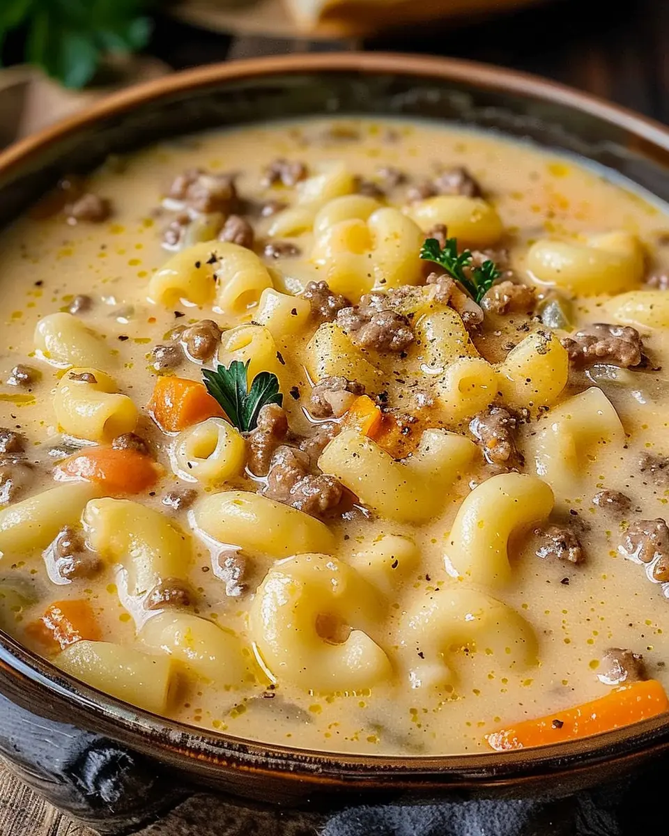 Cheeseburger Macaroni Soup: Easy Comfort Food with Turkey Bacon