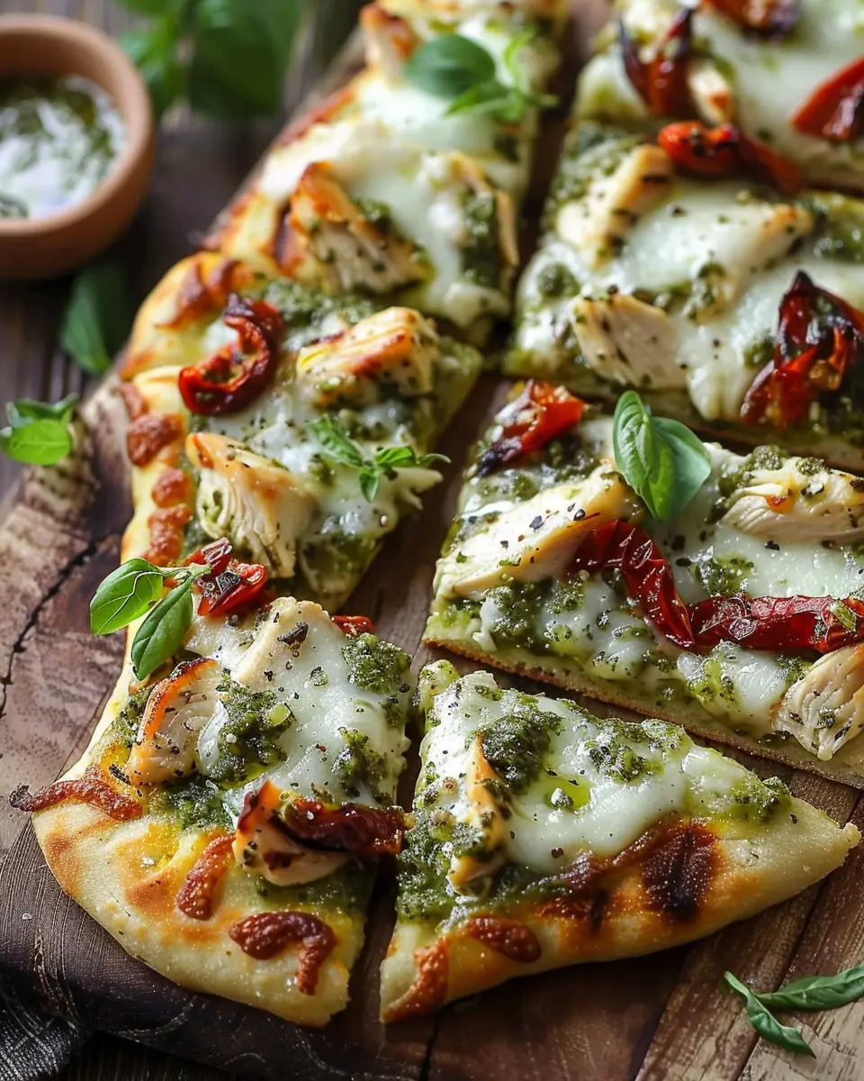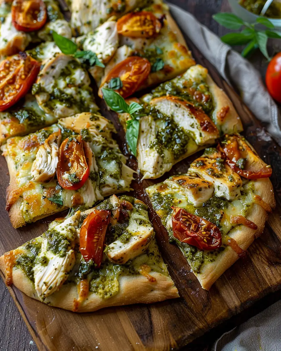 PrintChicken Pesto Flatbread: Easy Recipe for a Flavorful Meal