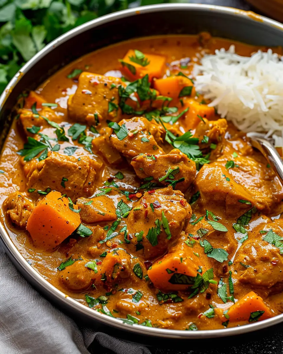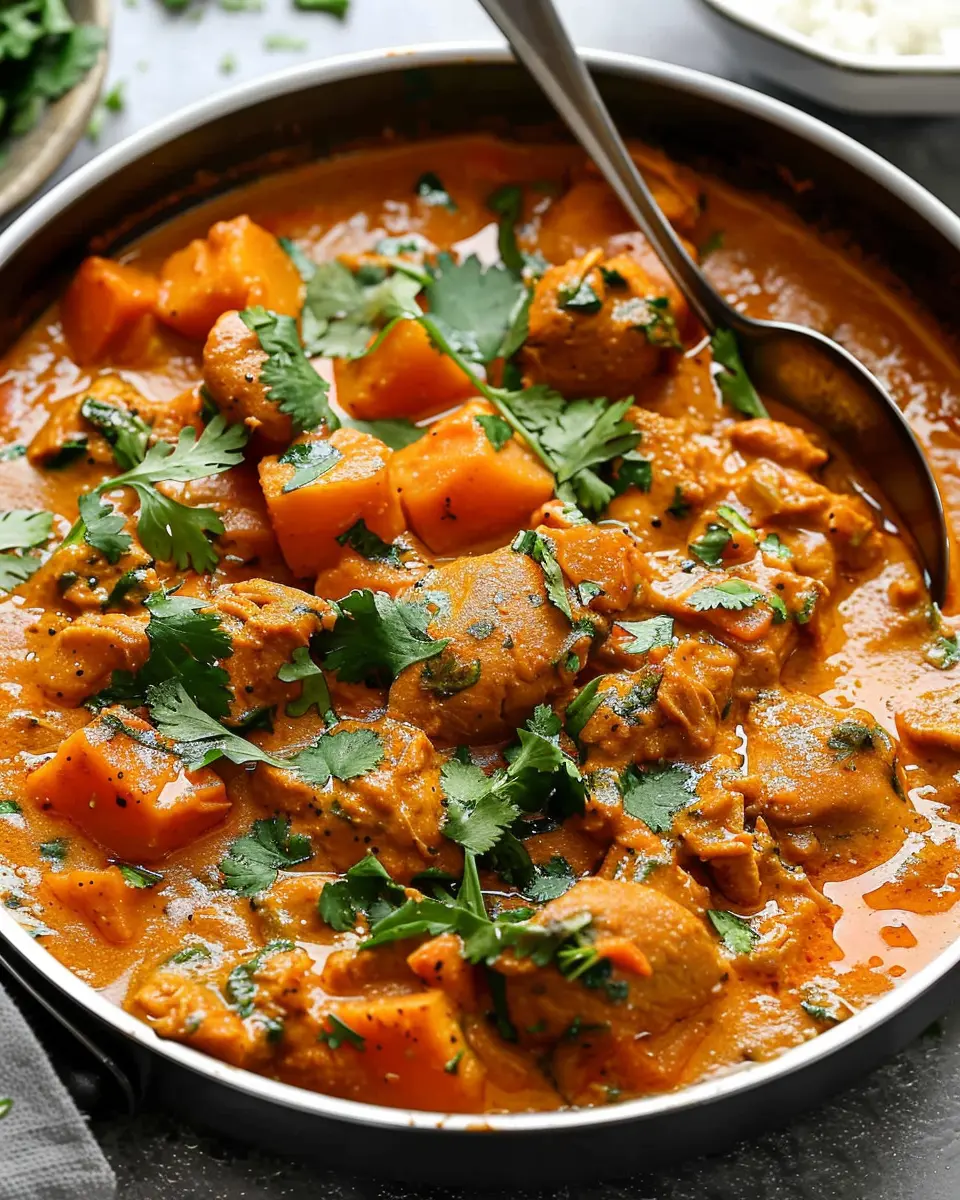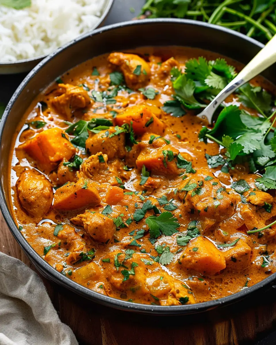 A warm bowl of Chicken Sweet Potato Curry is perfect for any night, bringing together sweet and spicy flavors for a delightful meal.
