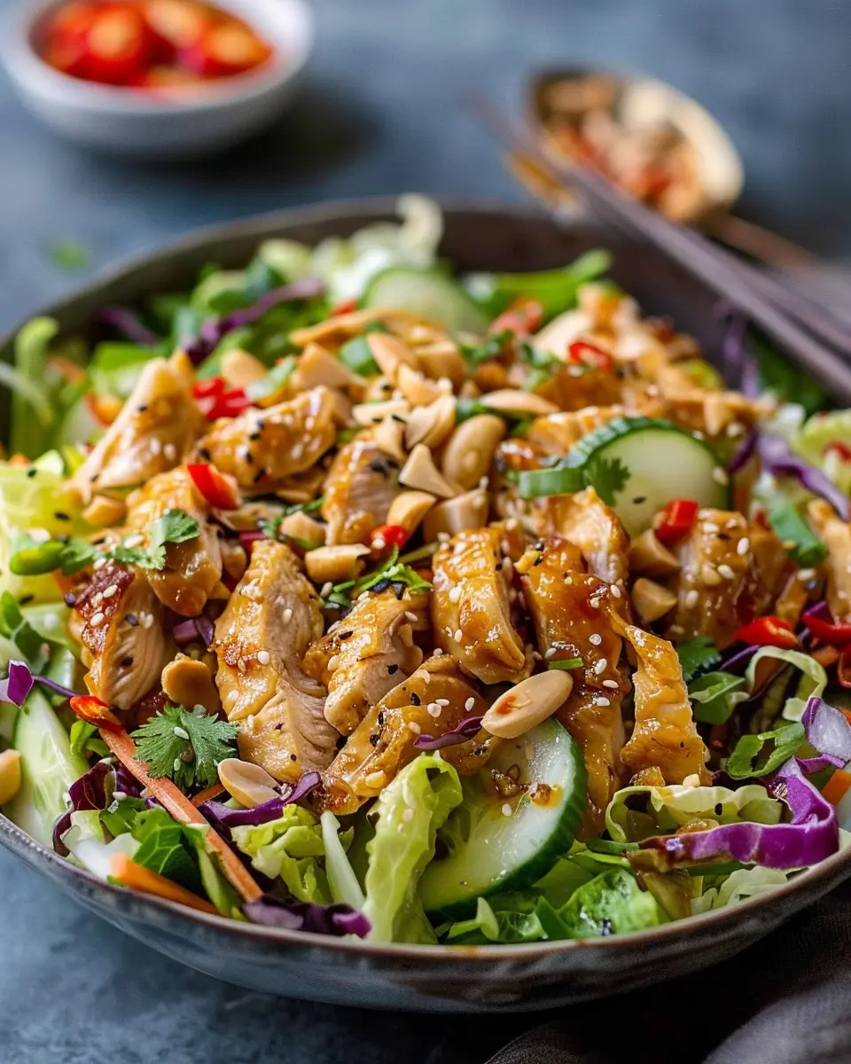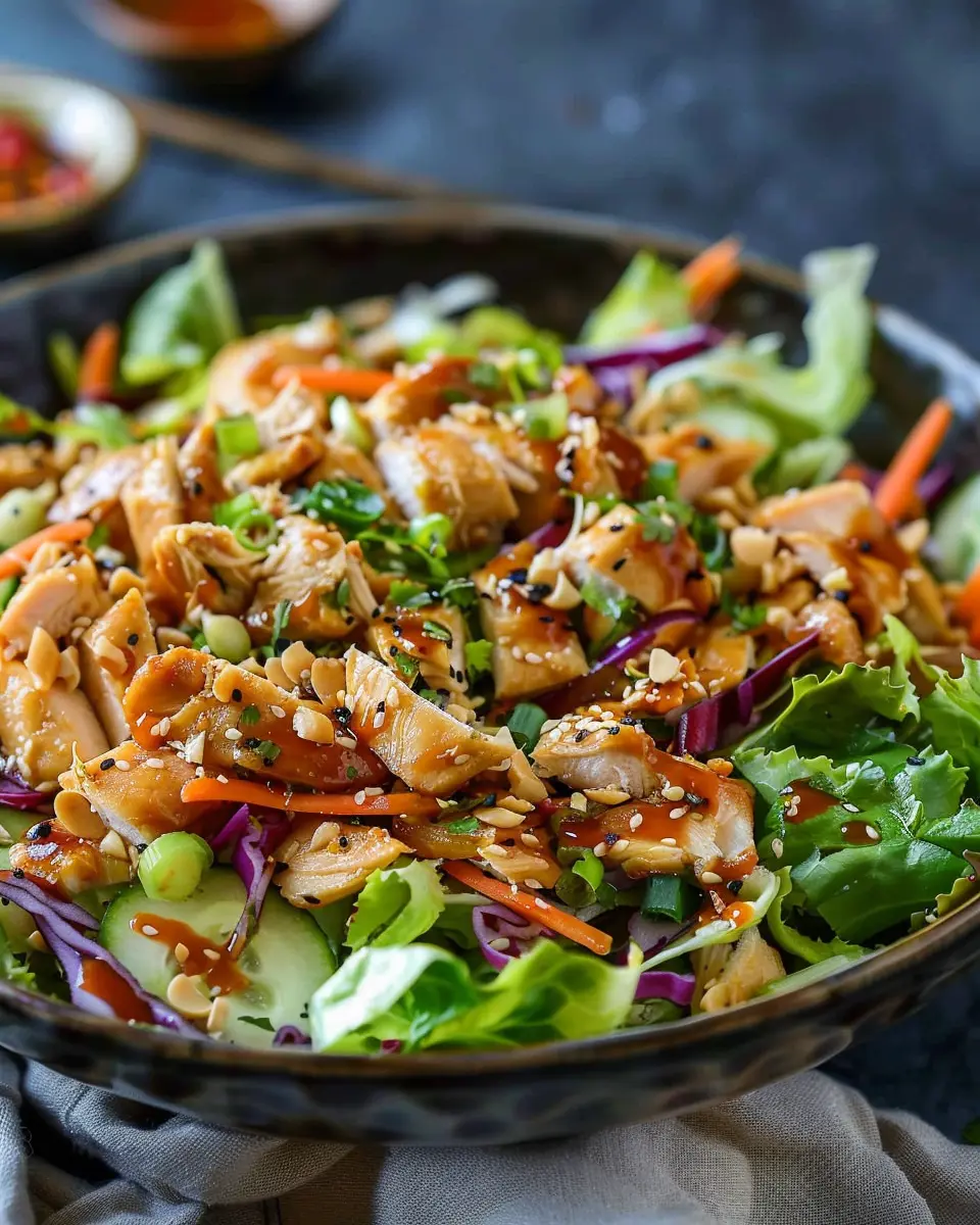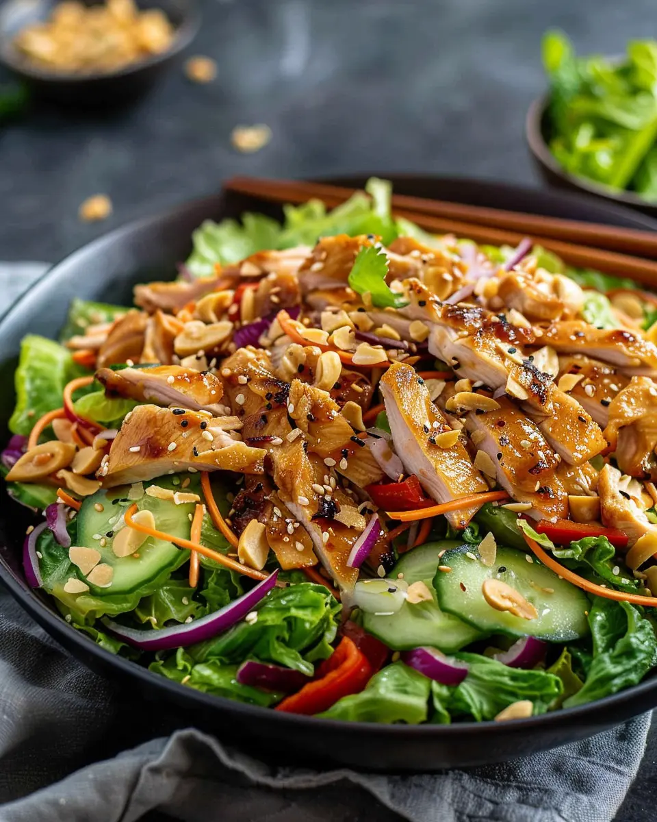 Crunch is key in any salad, and the Chinese Chicken Salad is no exception. Think beyond the traditional toppings! Try adding crushed peanuts, pumpkin seeds, or even a sprinkle of crispy shallots for a texture contrast that elevates your dish. If you’re feeling adventurous, experiment with some crispy rice noodles for that satisfying crunch. Each topping brings its own unique flavor and texture, inviting your palate to explore with every bite.