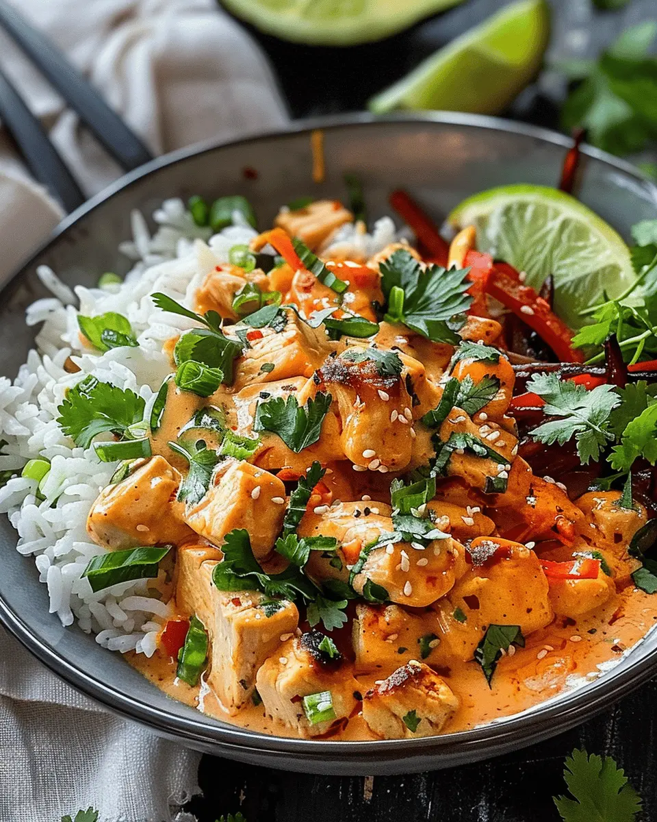 If you enjoy a bit of heat, there are several ways to ramp up the spice level in your Coconut Chicken Rice Bowl. Consider incorporating diced jalapeños or a splash of sriracha or chili oil into the coconut sauce. Fresh herbs like cilantro or Thai basil can add depth and a punch of flavor without being too overwhelming. Spicy seasonings like cayenne pepper or crushed red pepper flakes also do wonders. Remember, start with a small amount and taste as you go; you can always add more, but you can’t take it out once it’s in!