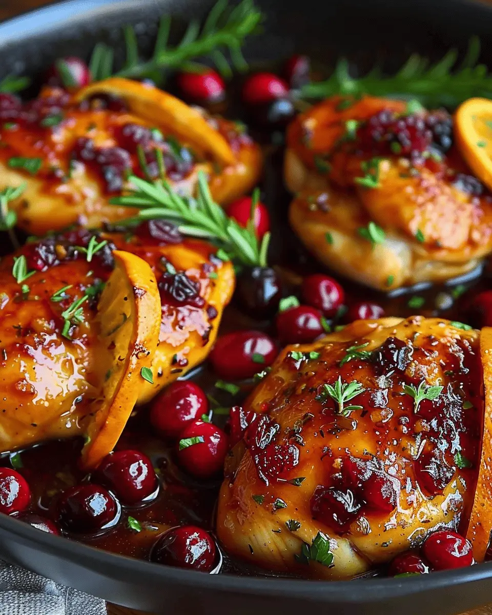 A mouthwatering chicken recipe featuring a delightful cranberry orange glaze that brings out the juicy flavors of the meat.