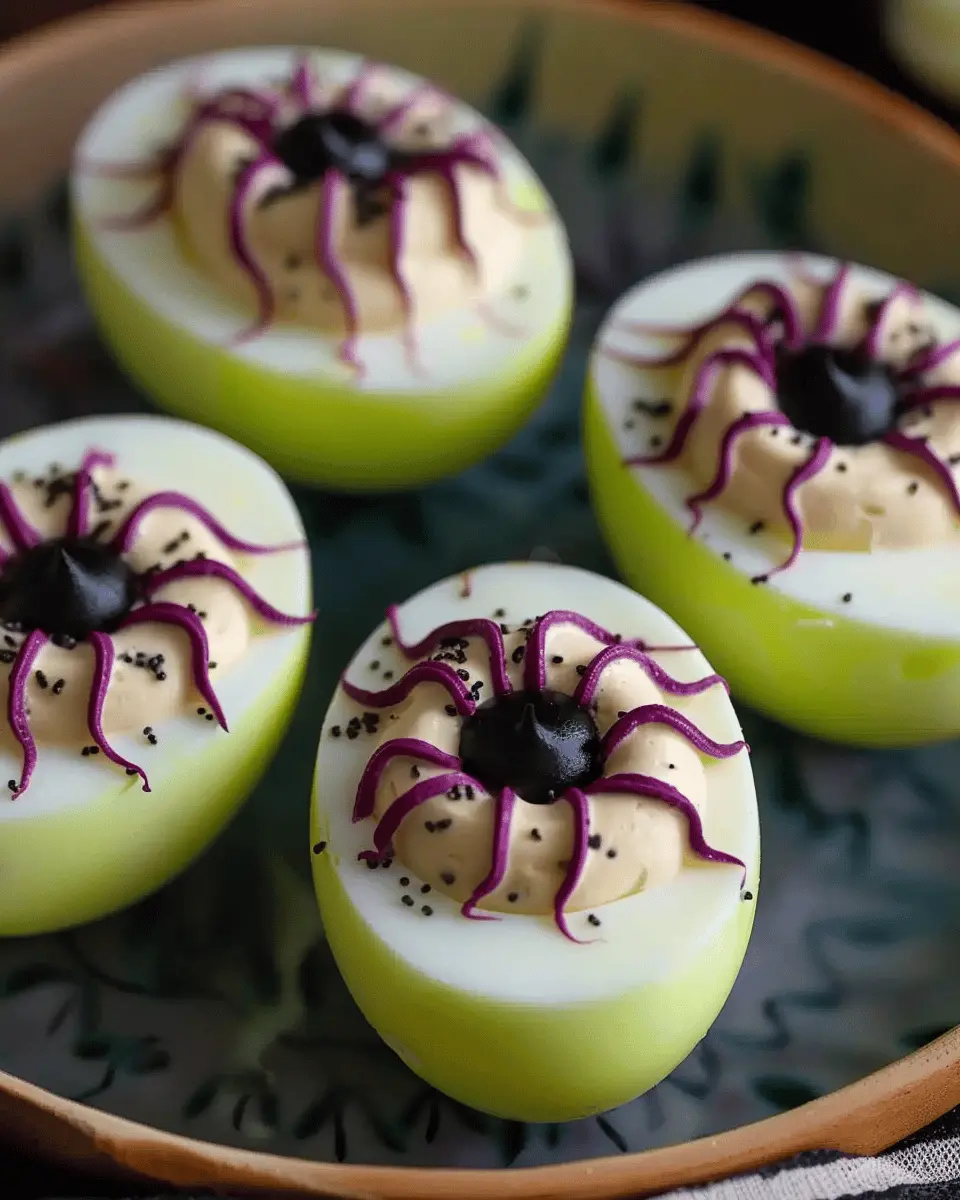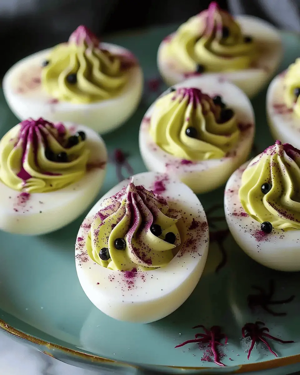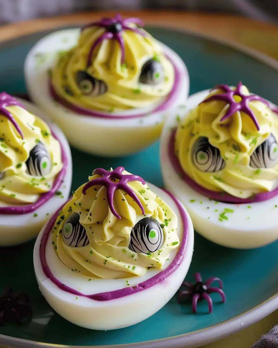 These Creepy Deviled Eggs are a perfect spooky treat for Halloween, combining delicious flavors with a frightfully fun presentation.