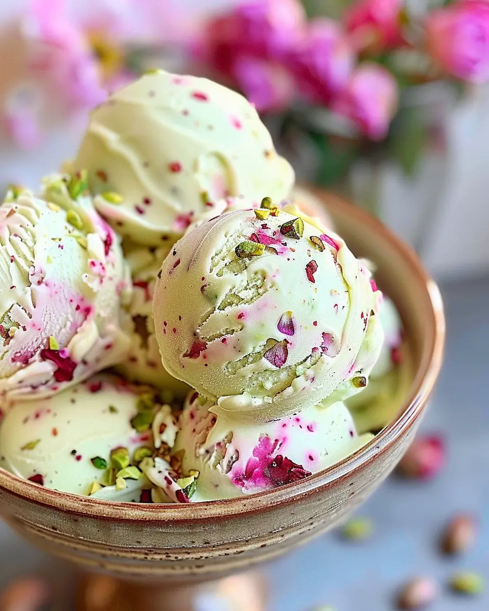 PrintFloral Pistachio Rose Ice Cream: An Indulgent Homemade Delight