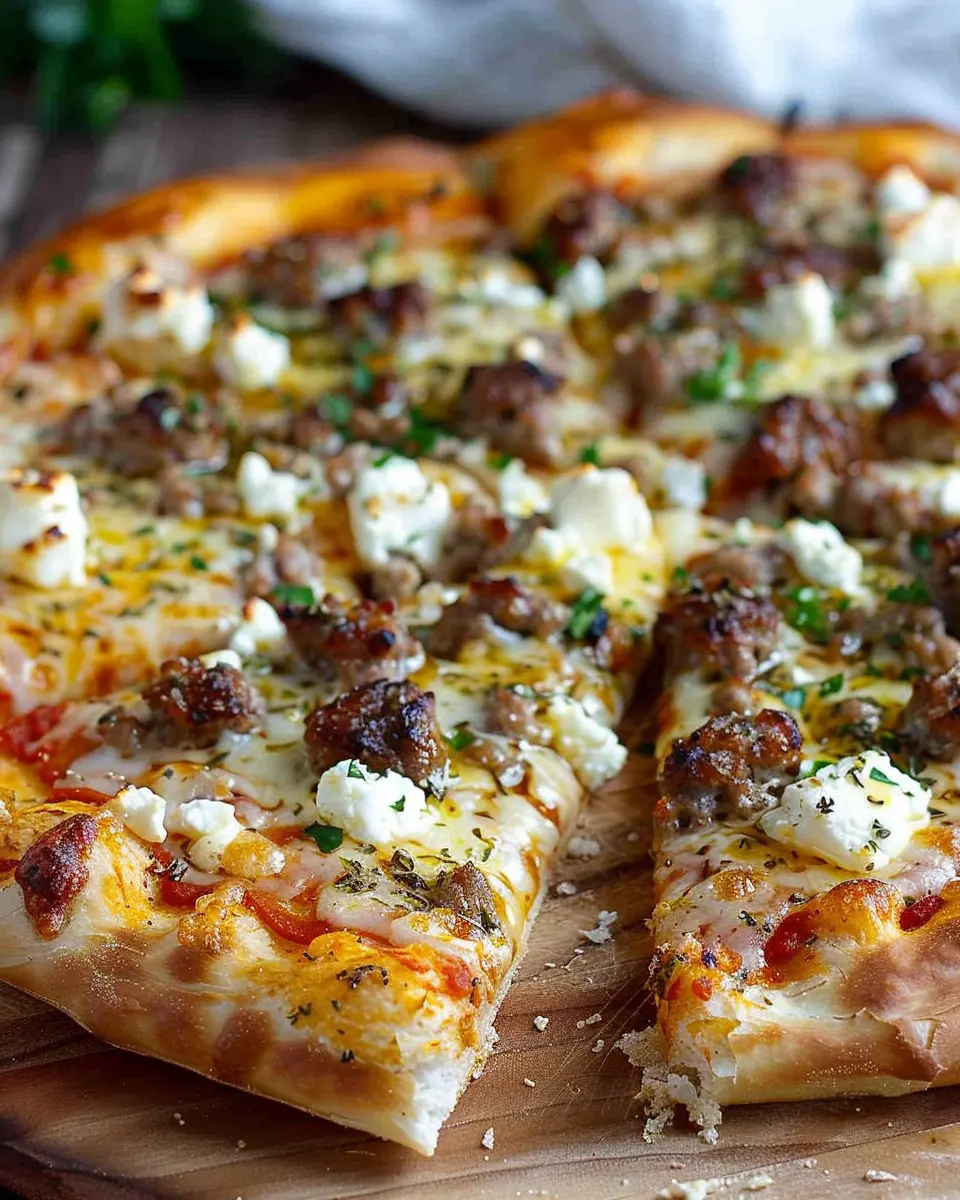 This is where the magic really starts! For your hot sausage feta honey pizza, choose quality ground beef sausage for a taste explosion.