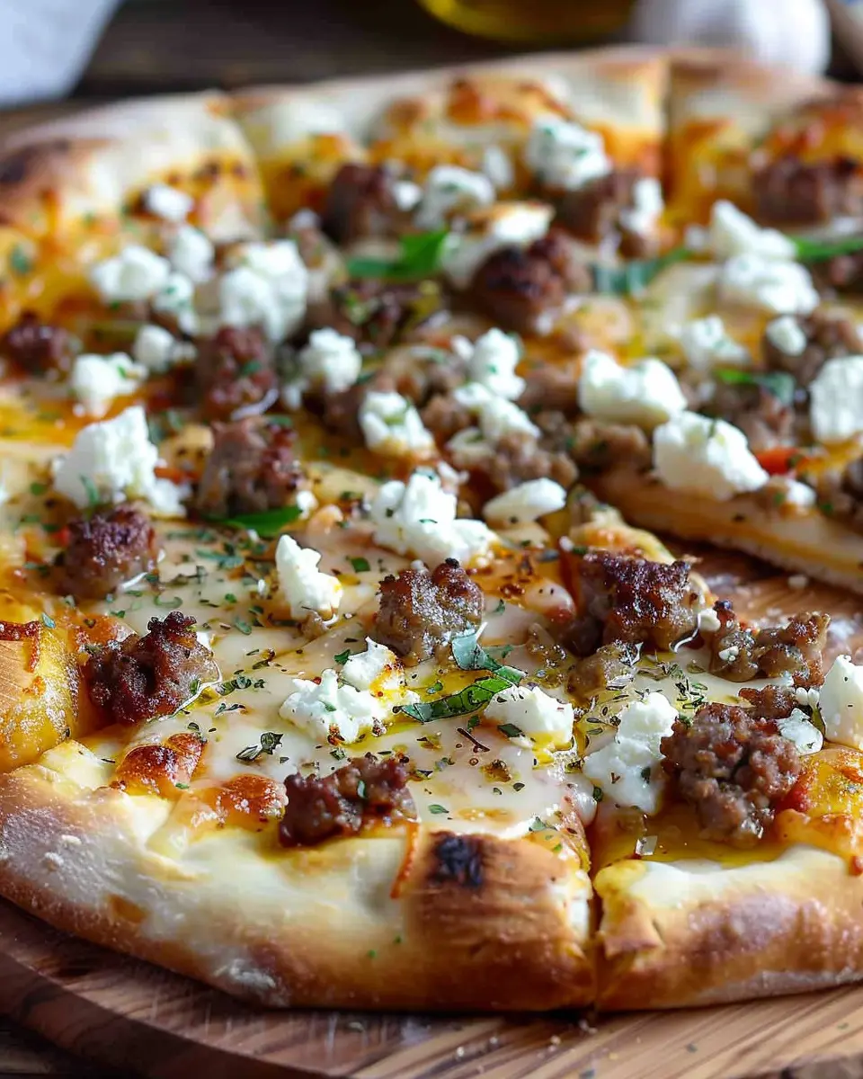PrintHot Sausage Feta Honey Pizza: A Delicious Twist on Classic Flavors