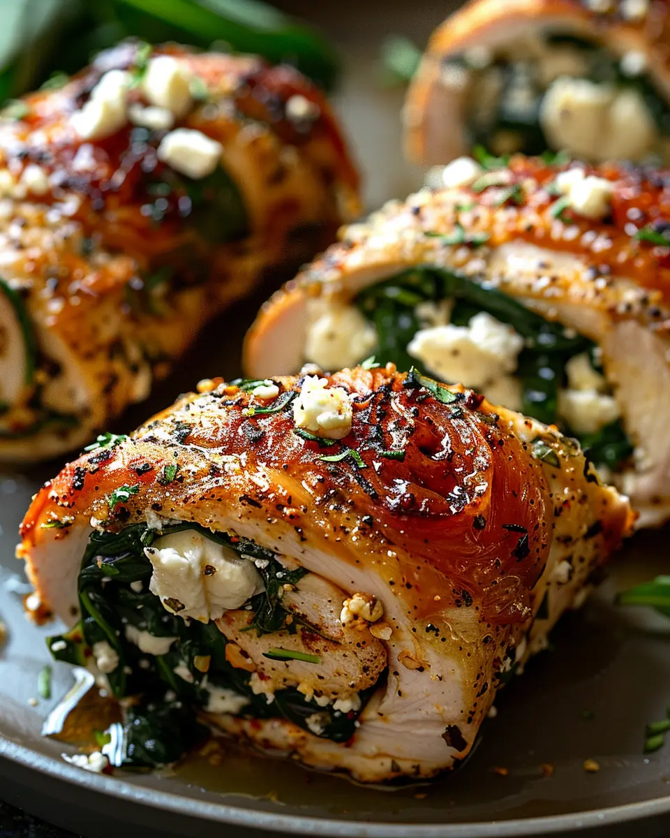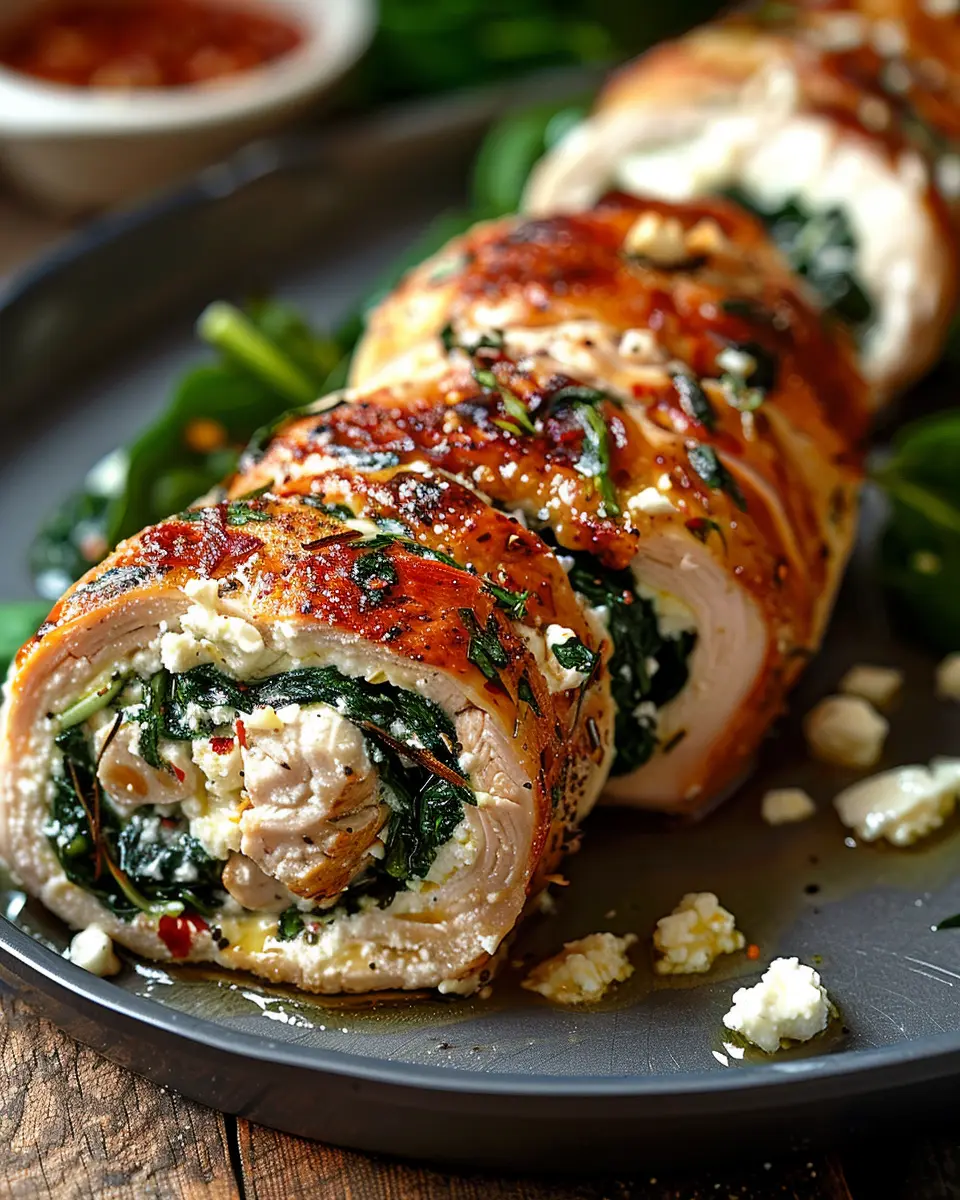 PrintJuicy Rolled Chicken with Feta: A Flavorful Spinach Delight