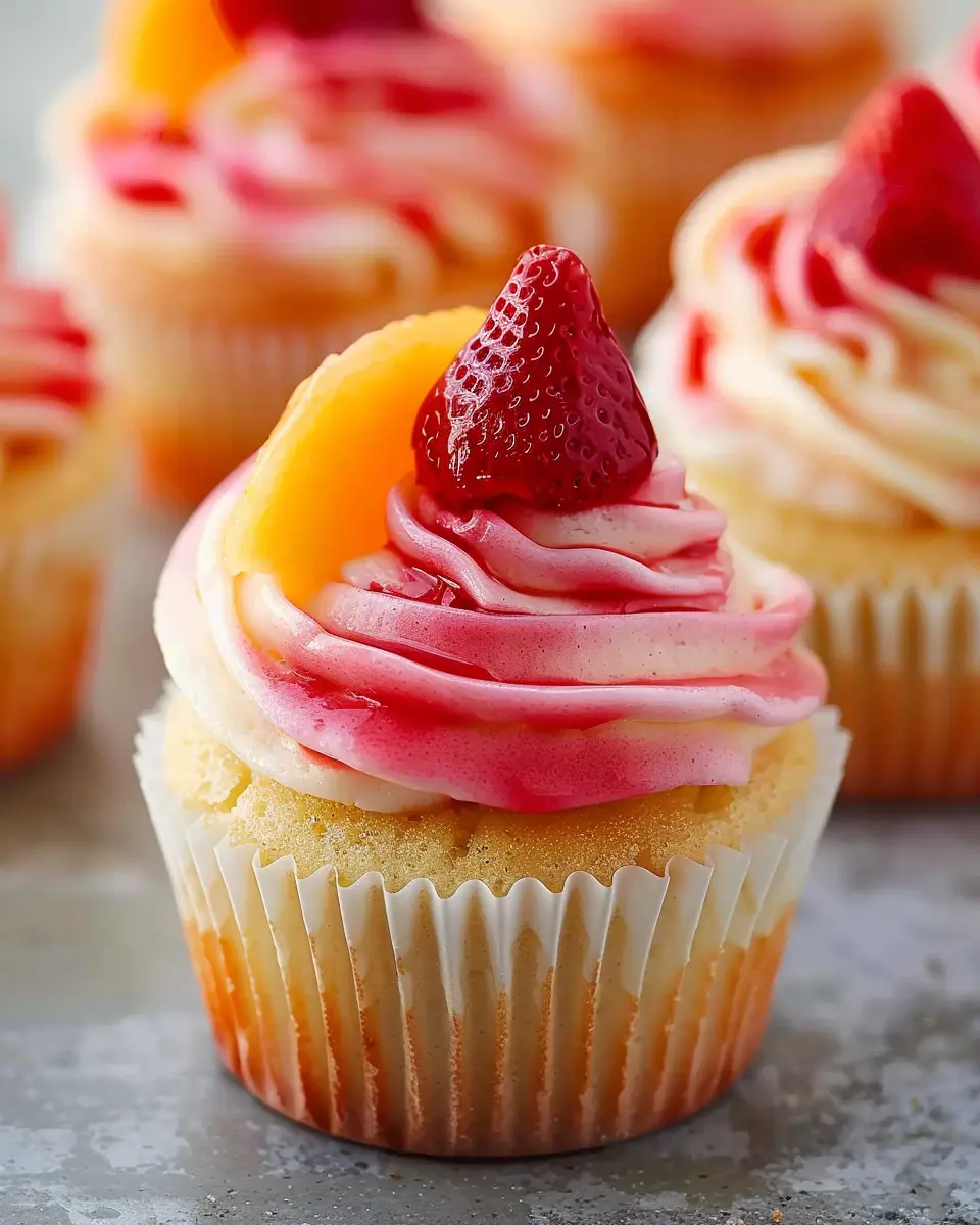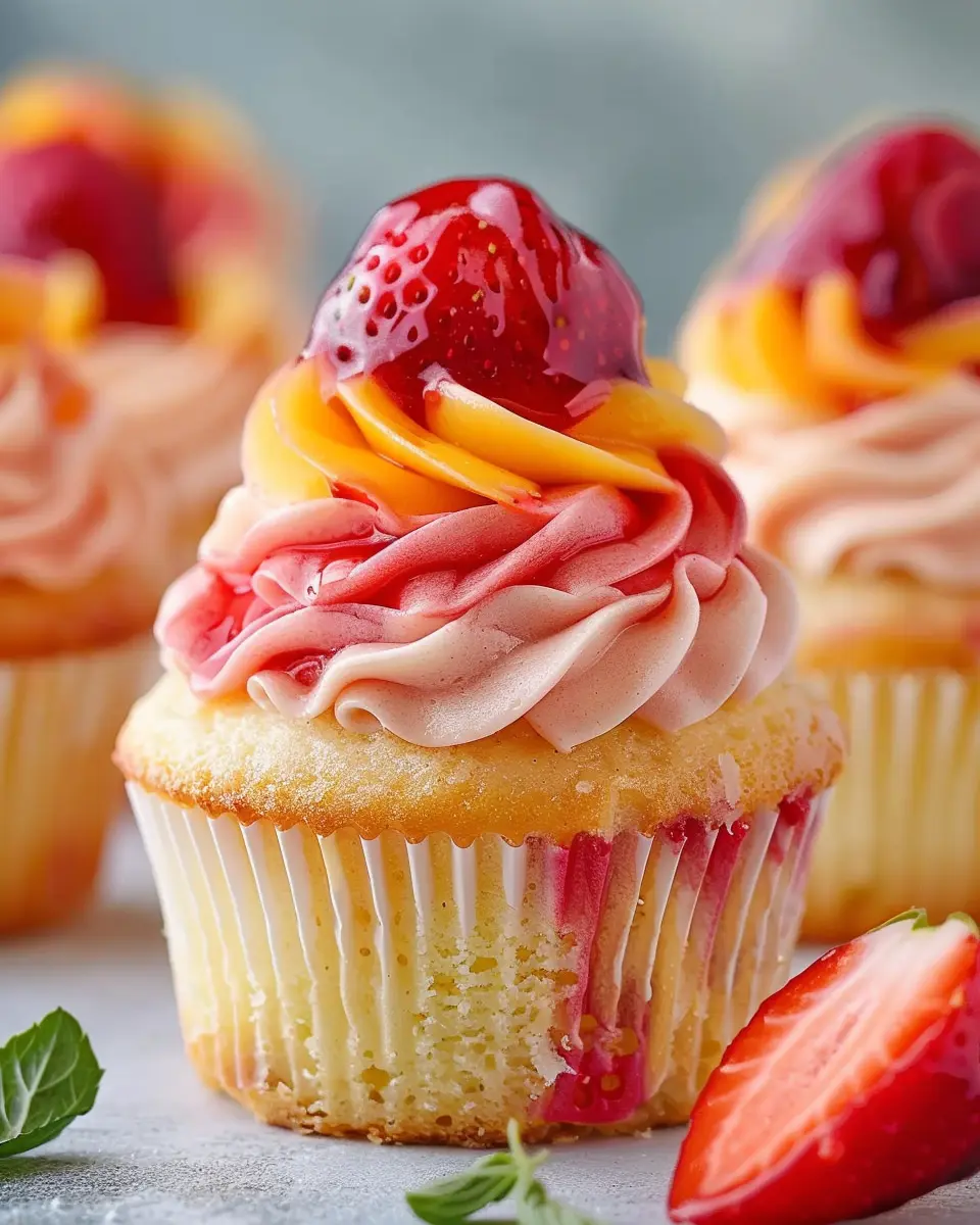PrintMango Strawberry Sunset Cupcakes: Easy Indulgence for Home Bakers
