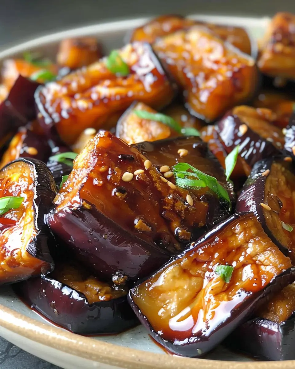 The combination of the eggplant’s tenderness with the rich, sweet-savory glaze will have your taste buds thanking you. Don’t forget to sprinkle sesame seeds and chopped green onions on top for added flavor and visual appeal!