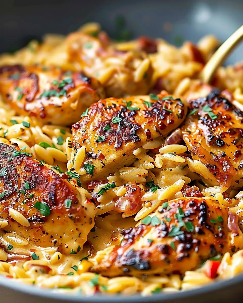 A creamy and flavorful dish combining Cajun spices with tender chicken and orzo pasta.