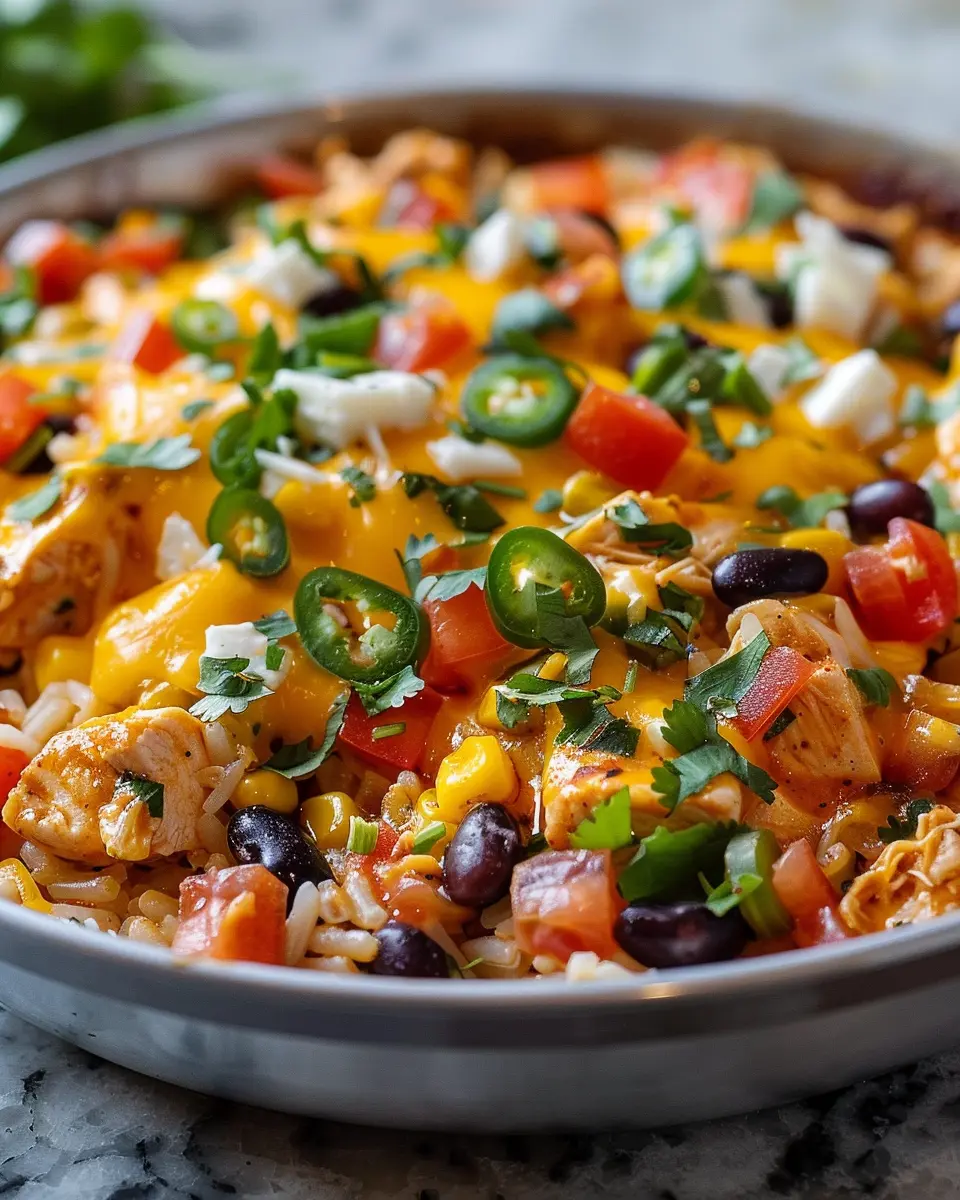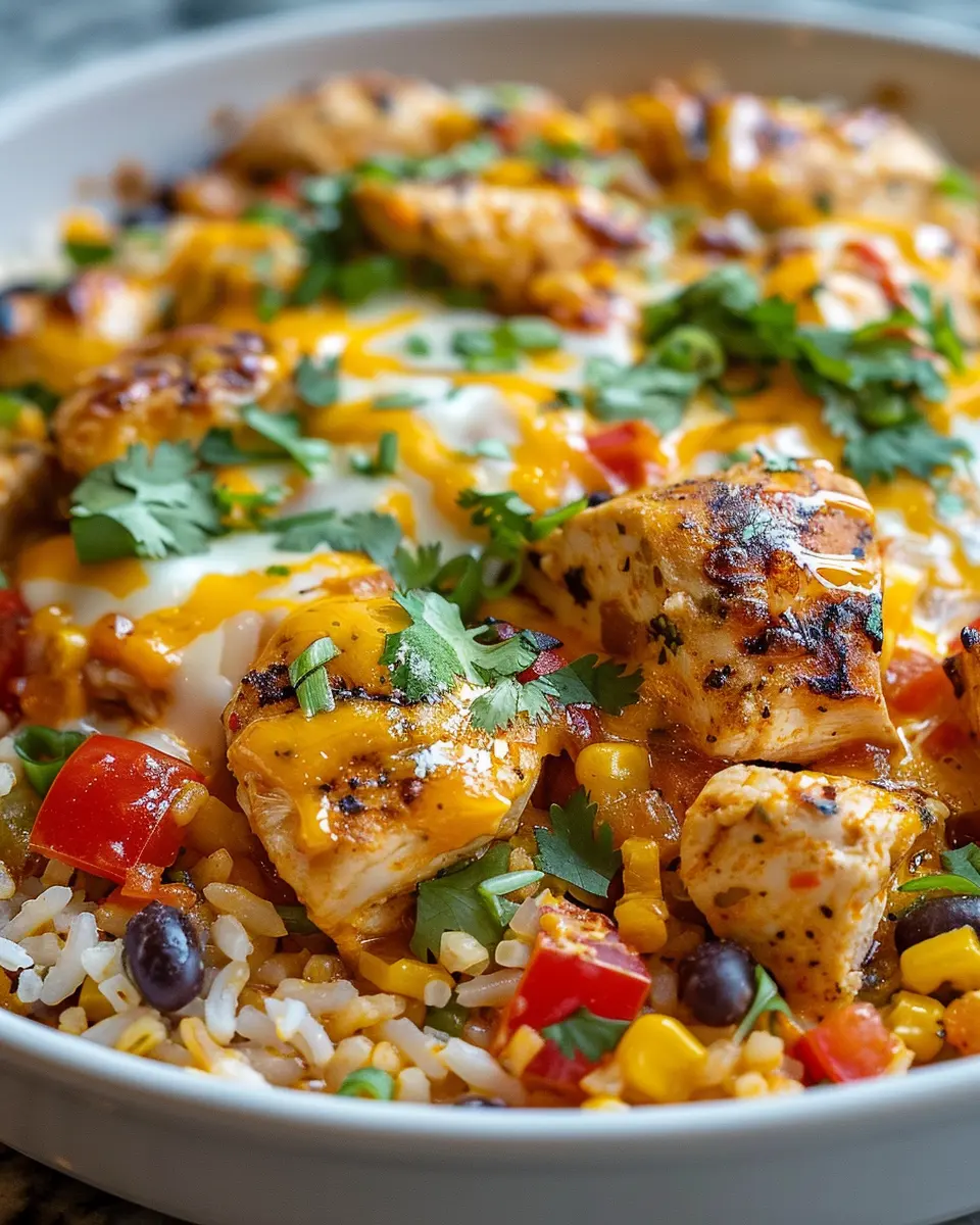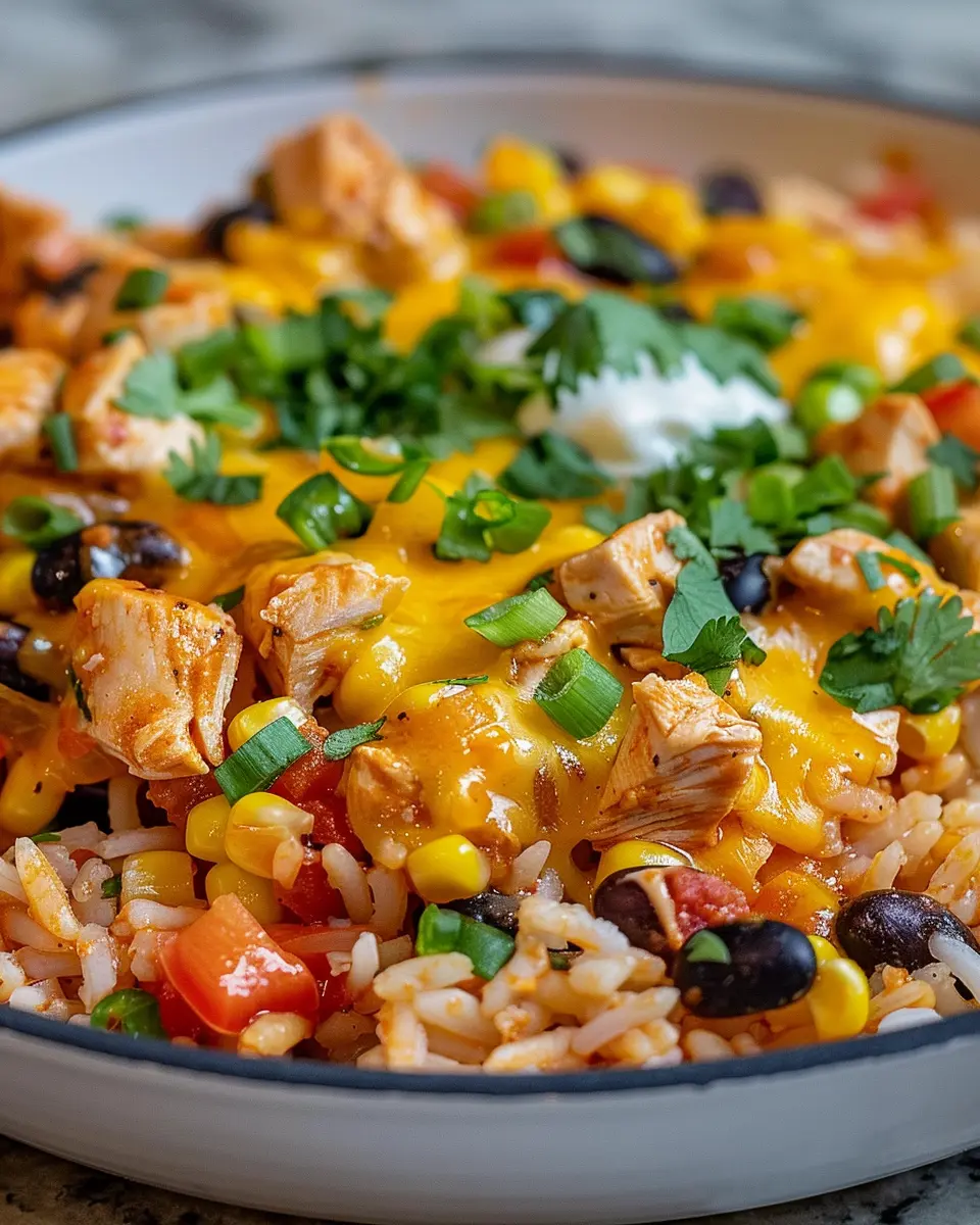 Elevate your One-Pot Cheesy Southwest Chicken & Rice with a sprinkle of fresh cilantro or parsley on top. A dollop of sour cream or Greek yogurt adds a refreshing creaminess that perfectly balances the spices. For a spicy kick, try adding sliced jalapeños or a drizzle of hot sauce. Want a zesty finish? Squeeze a little lime juice right before serving for an extra burst of flavor!