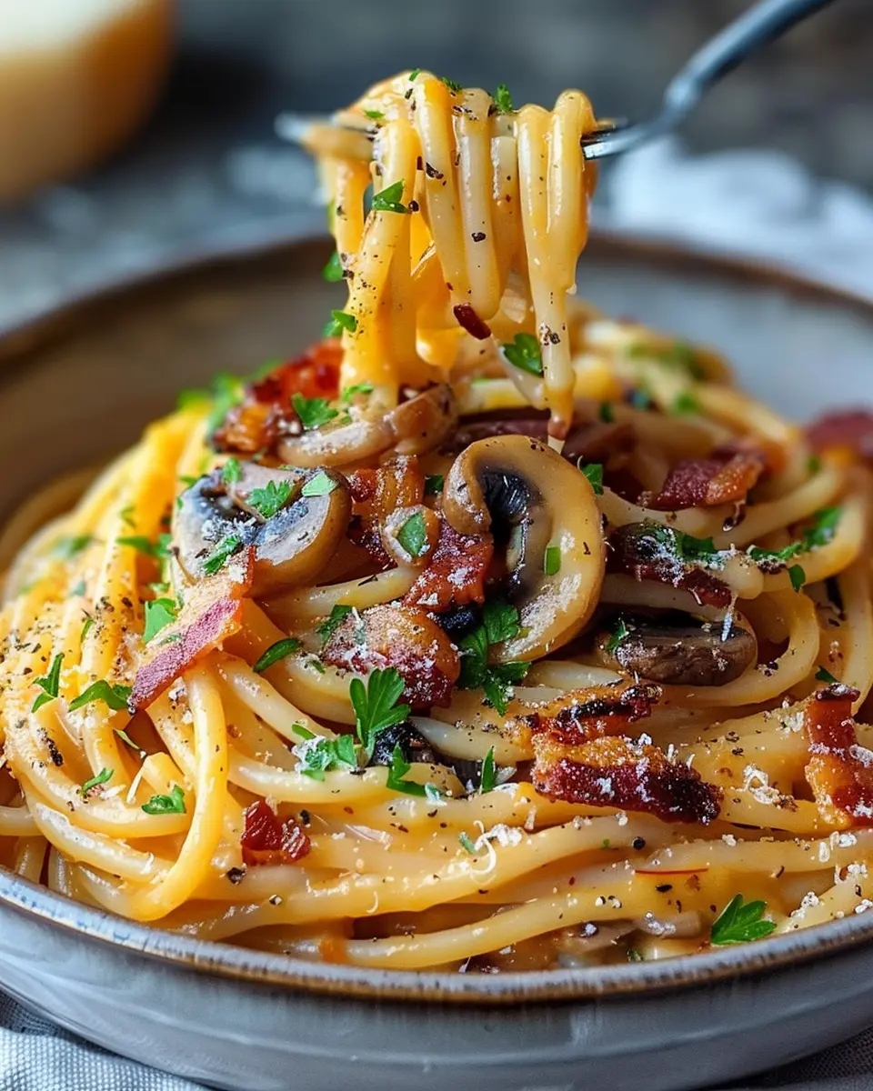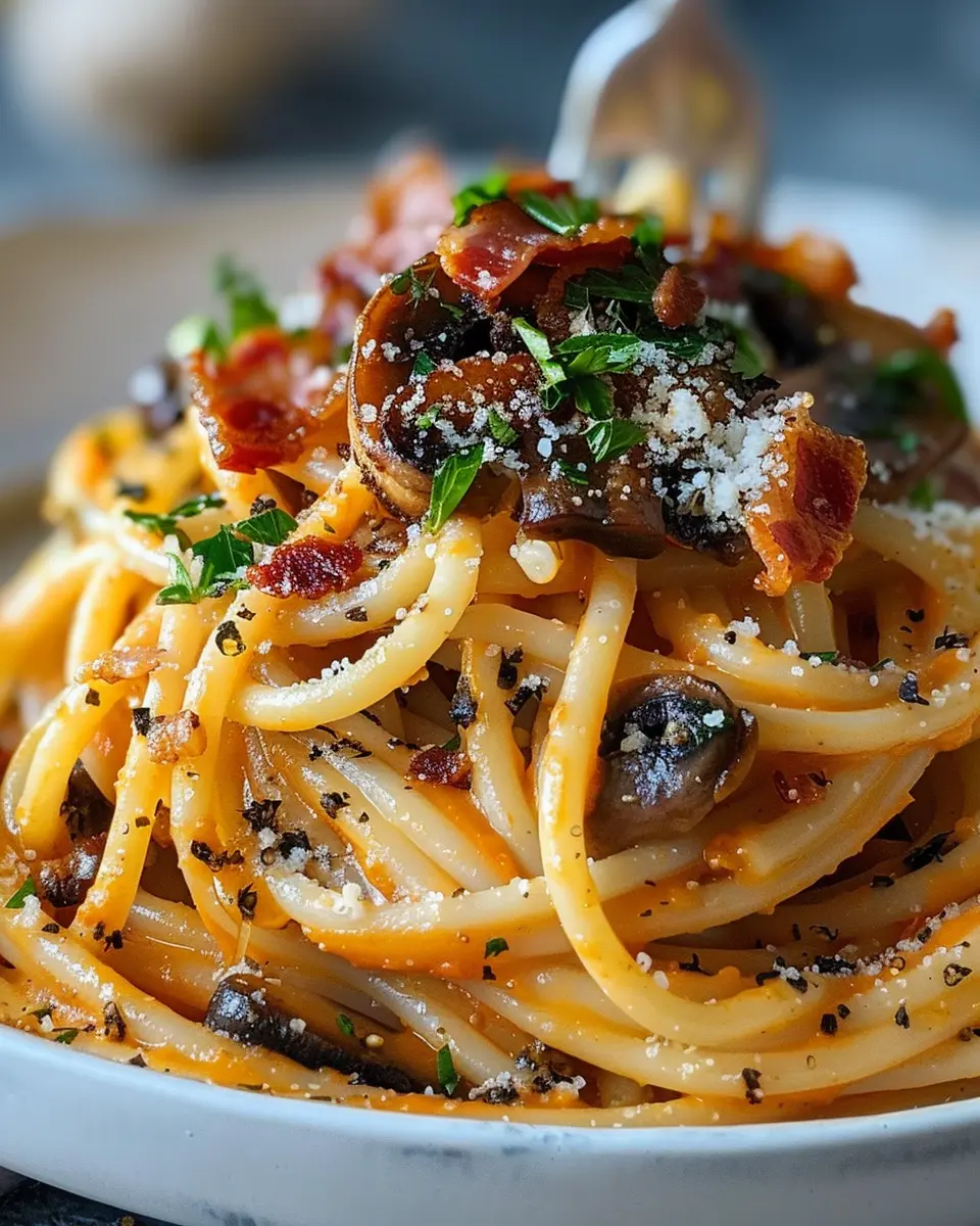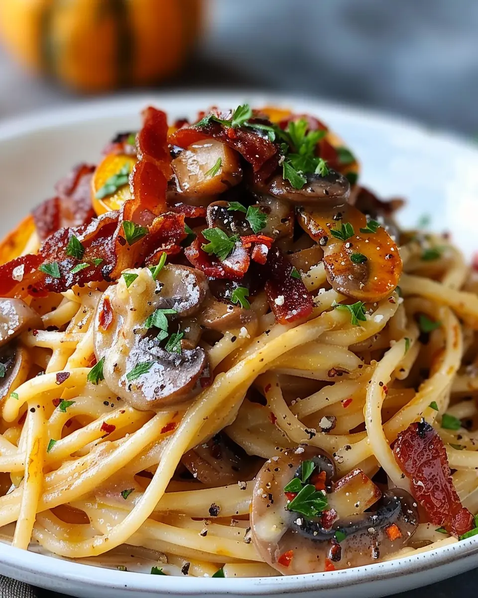 In summary, Pumpkin & Mushroom Spaghetti with Crispy Turkey Bacon is not just a dish; it’s a delightful experience that combines seasonal flavors and comforting textures. The creamy pumpkin pairs perfectly with the earthy mushrooms, while the crispy turkey bacon adds that much-loved crunch. This recipe is not only simple but also nutritious and versatile—ideal for quick weeknight dinners or impressing friends.