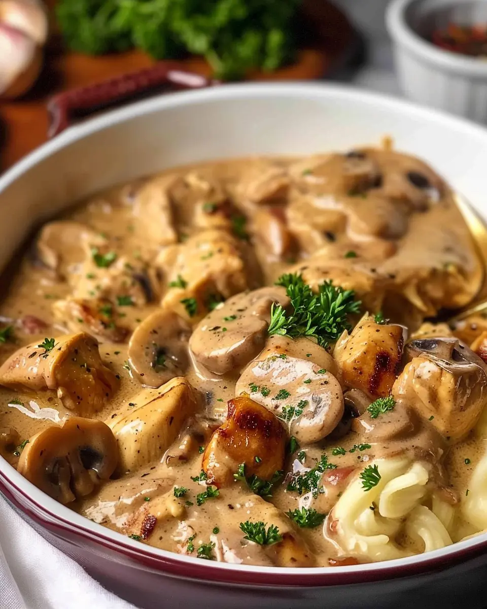 Rich Chicken Stroganoff is a creamy and indulgent dish that beautifully combines the flavors of tender chicken, mushrooms, and a decadent sauce, making it the perfect comfort food for any occasion.
