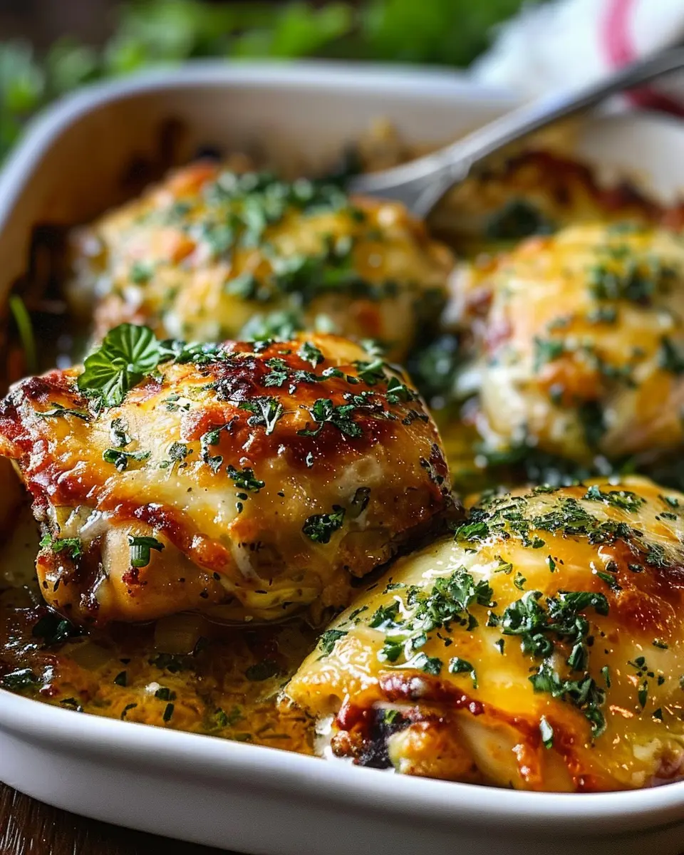 Slide your baking dish into the preheated oven and let it work its magic for about 25-30 minutes. It’s crucial to check the chicken’s internal temperature—it should reach at least 165°F (75°C) for safe dining. The top should be golden brown and bubbly. Pro tip: if you want an extra crispy finish, turn on the broiler for the last 2-3 minutes, but keep a close eye to prevent burning!