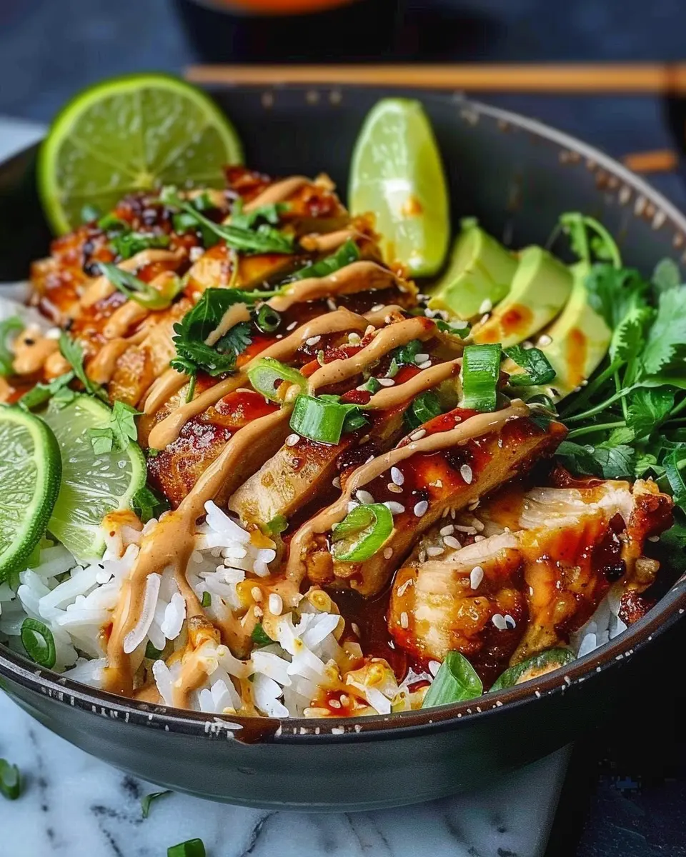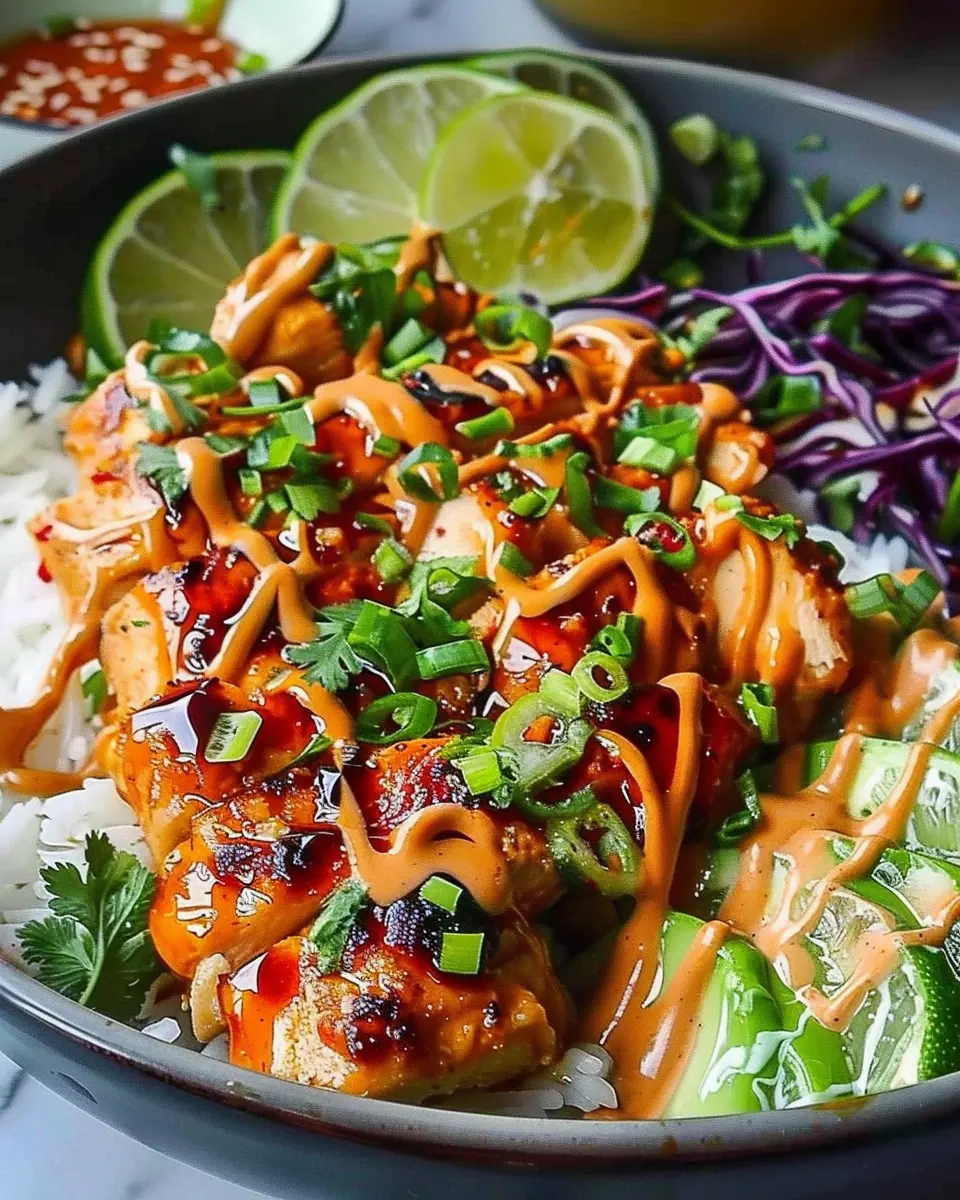 Sweet Chili Chicken Bowl with Coconut Lime Drizzle