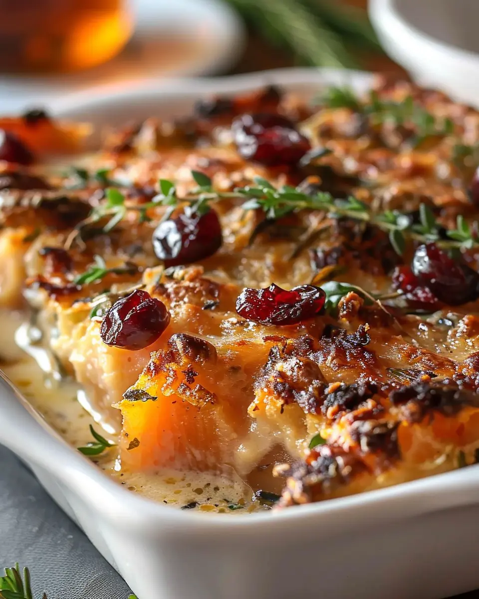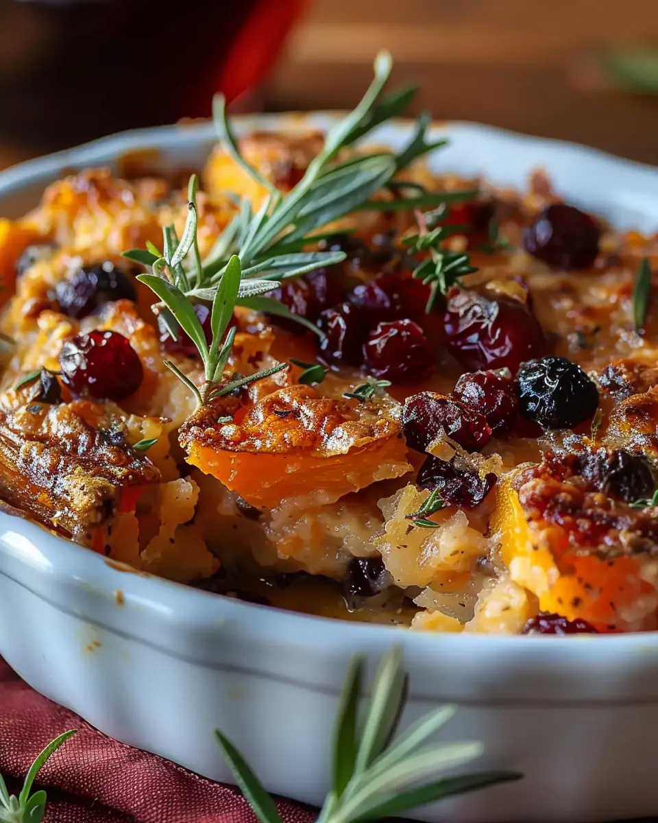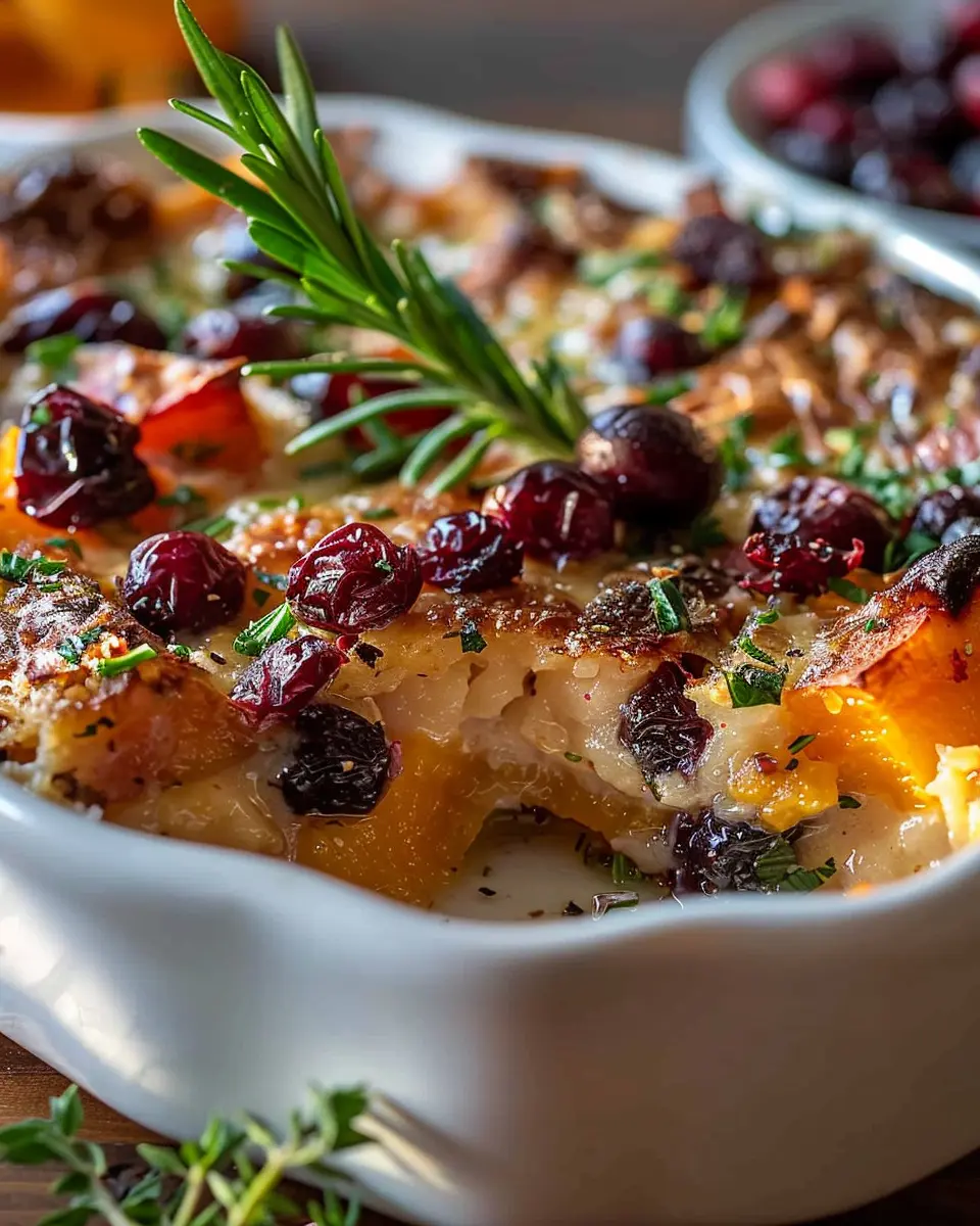 First and foremost, the vibrant colors of this gratin can transform any table setting into a feast for the eyes. The golden-orange hues of sweet potatoes, complemented by the bright red cranberries, add visual appeal, inviting everyone to dig in.