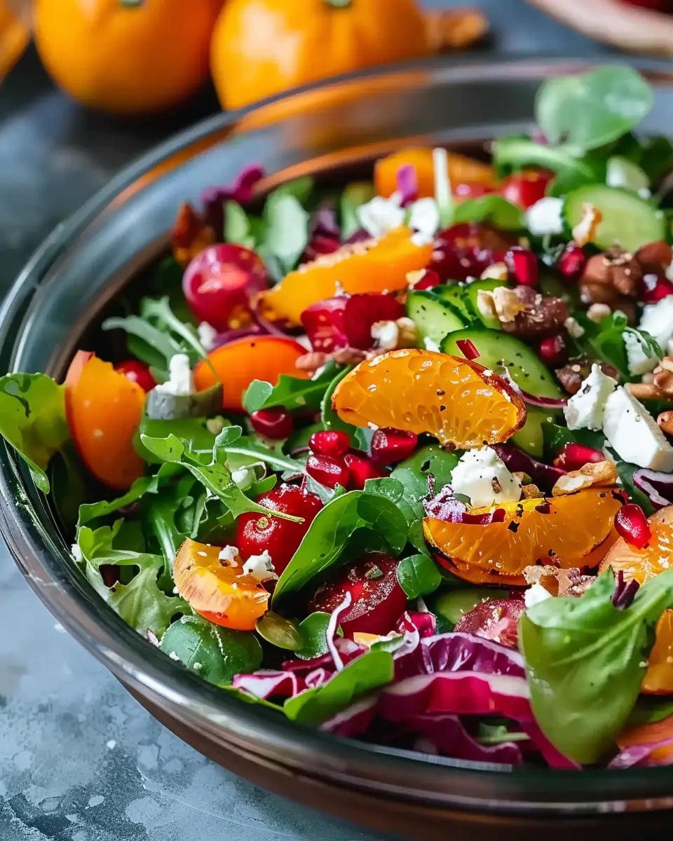 Once everything is beautifully prepped, the assembly takes just 10 minutes. Simply toss your ingredients together, drizzle your favorite vinaigrette, and voilĆ ! Your colorful winter salad is ready to impress.